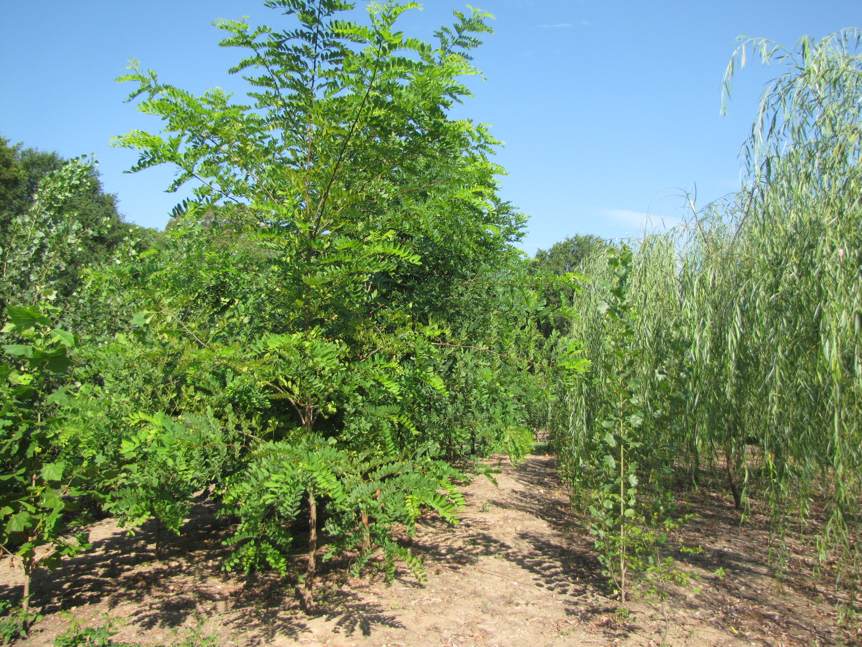 Black locust trees are fast-growing with an open habit, prominent thorns when young, and deeply furrowed bark when mature. Their fragrant white pea-like flowers attract honey bees, who make an aromatic honey from the pollen.