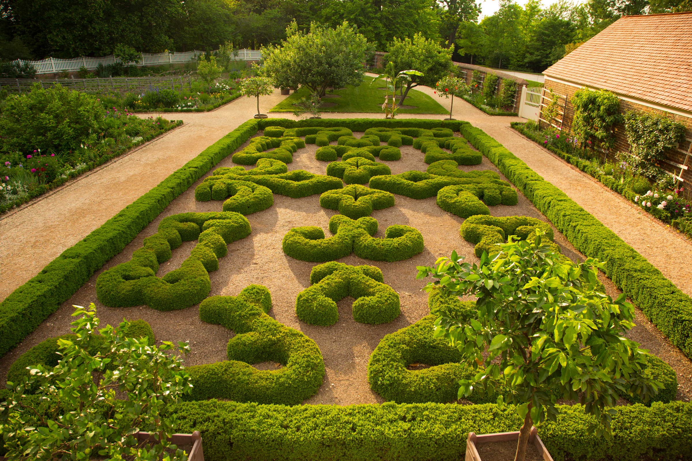 After visiting Mount Vernon in 1796, architect Benjamin Latrobe observed, "On one side of the lawn is a plain Kitchen garden, on the other side a neat flower garden laid out in squares, and boxed with great precission [sic]."
