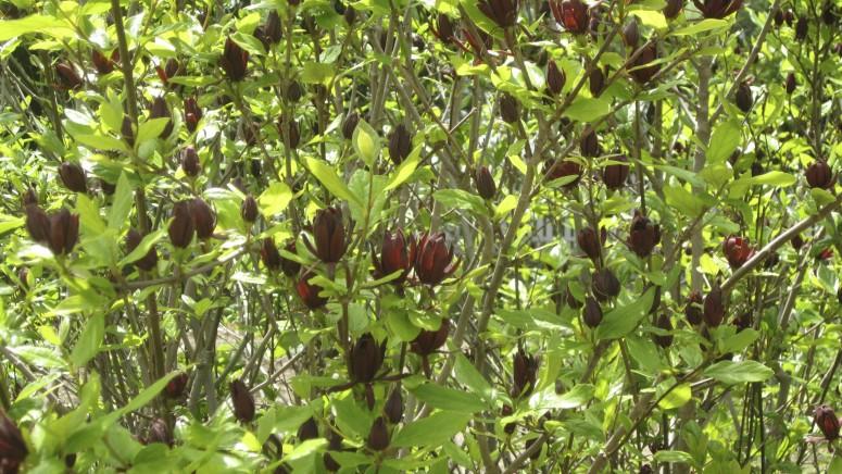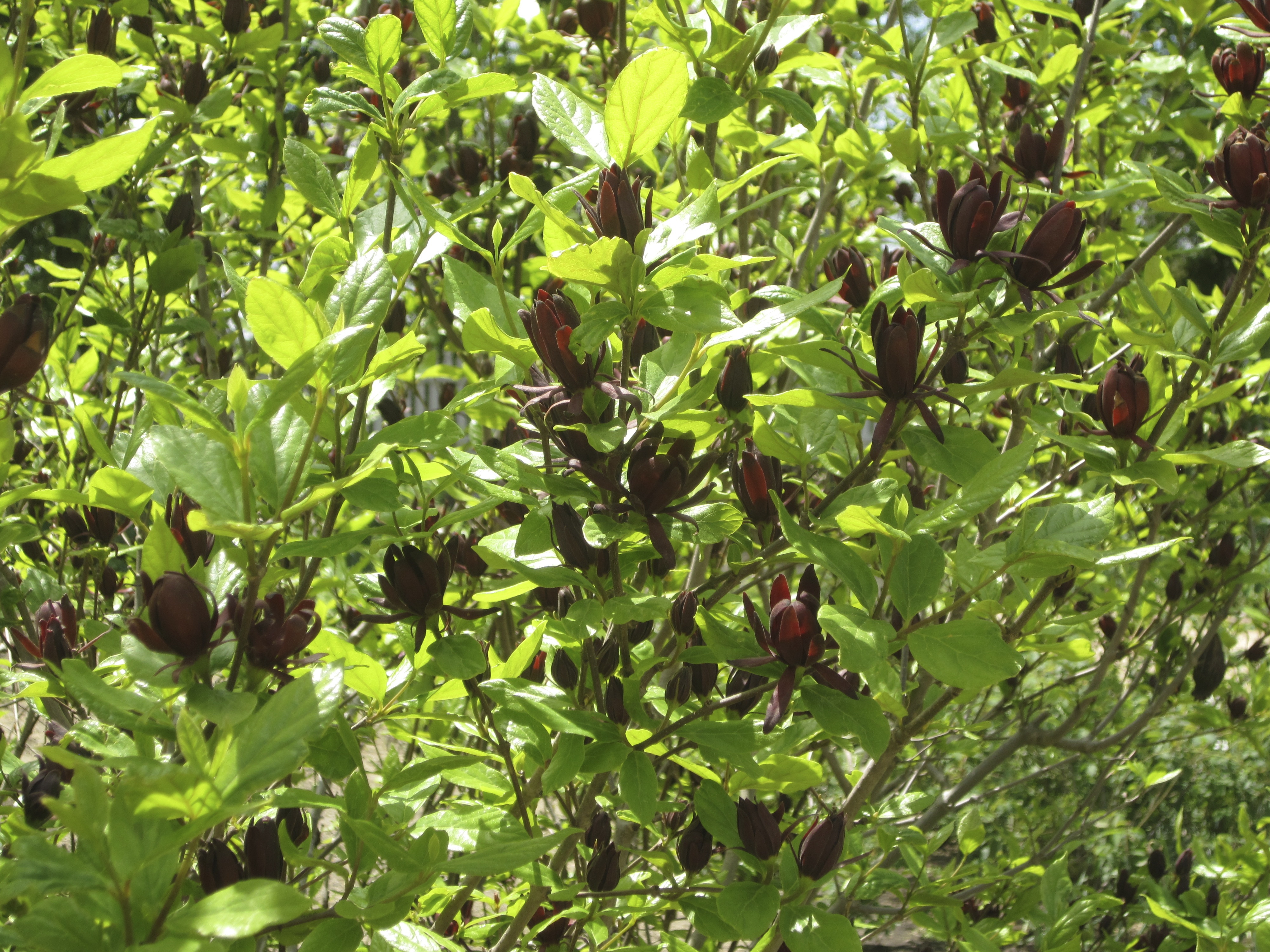 Give this shrub ample room to sprawl, as it tends to sucker when it's happy. The unusual chocolatey maroon flowers give off a spicy sweet fragrance which is echoed in cut twigs and leaves.