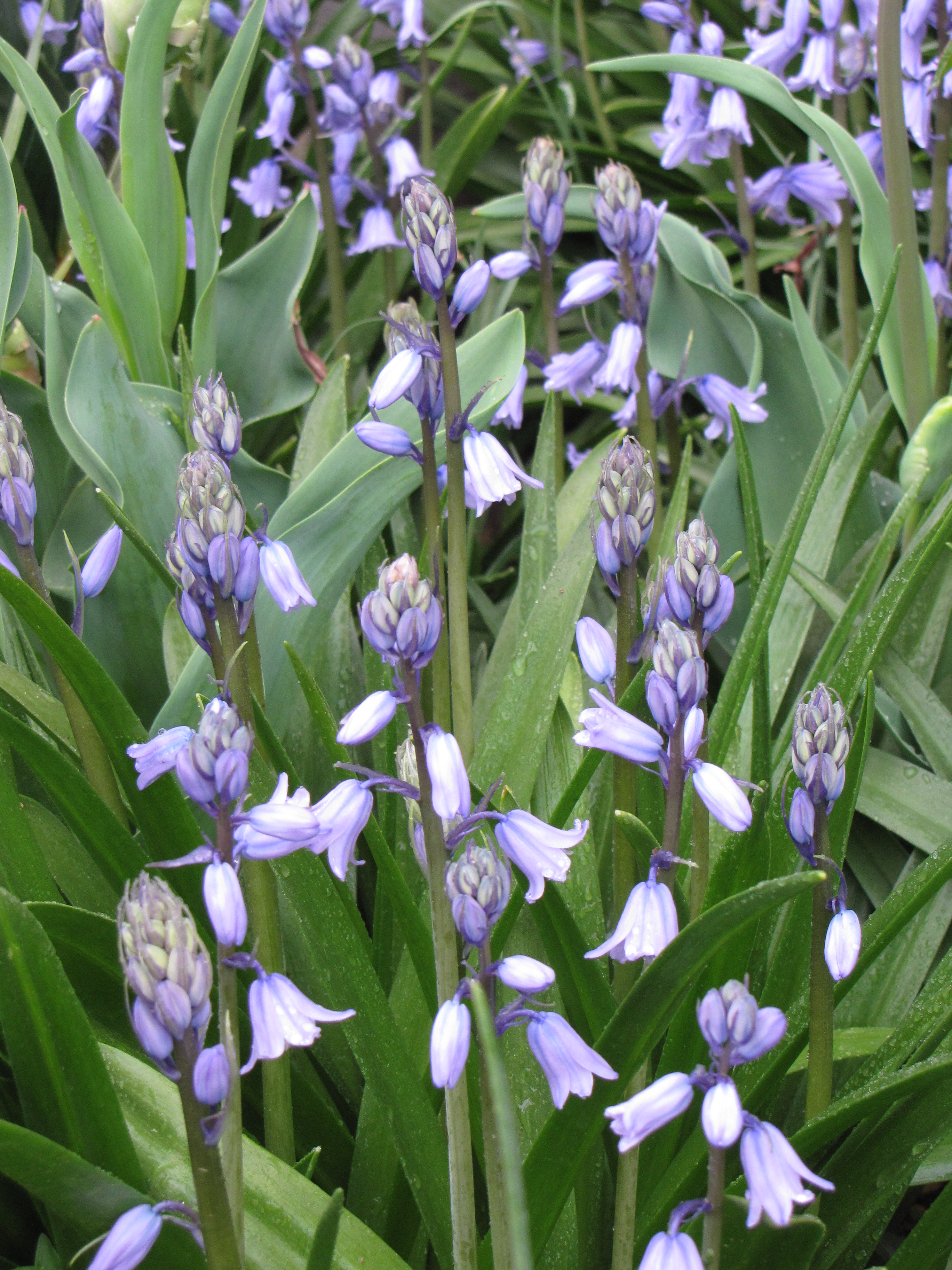Cascading blue flowers on arching stems slowly naturalize in the garden.