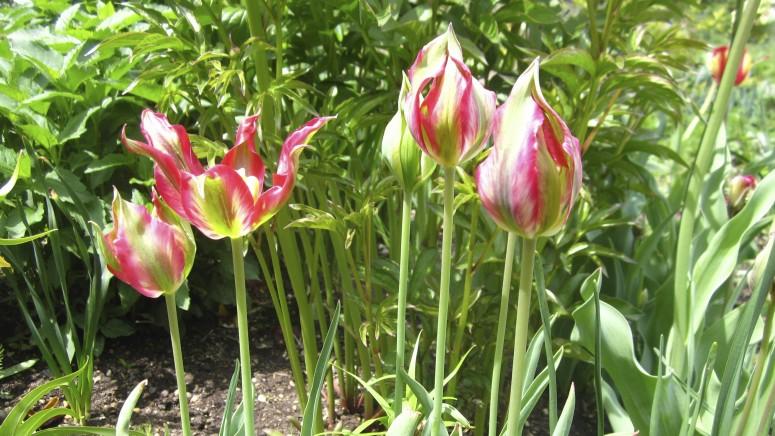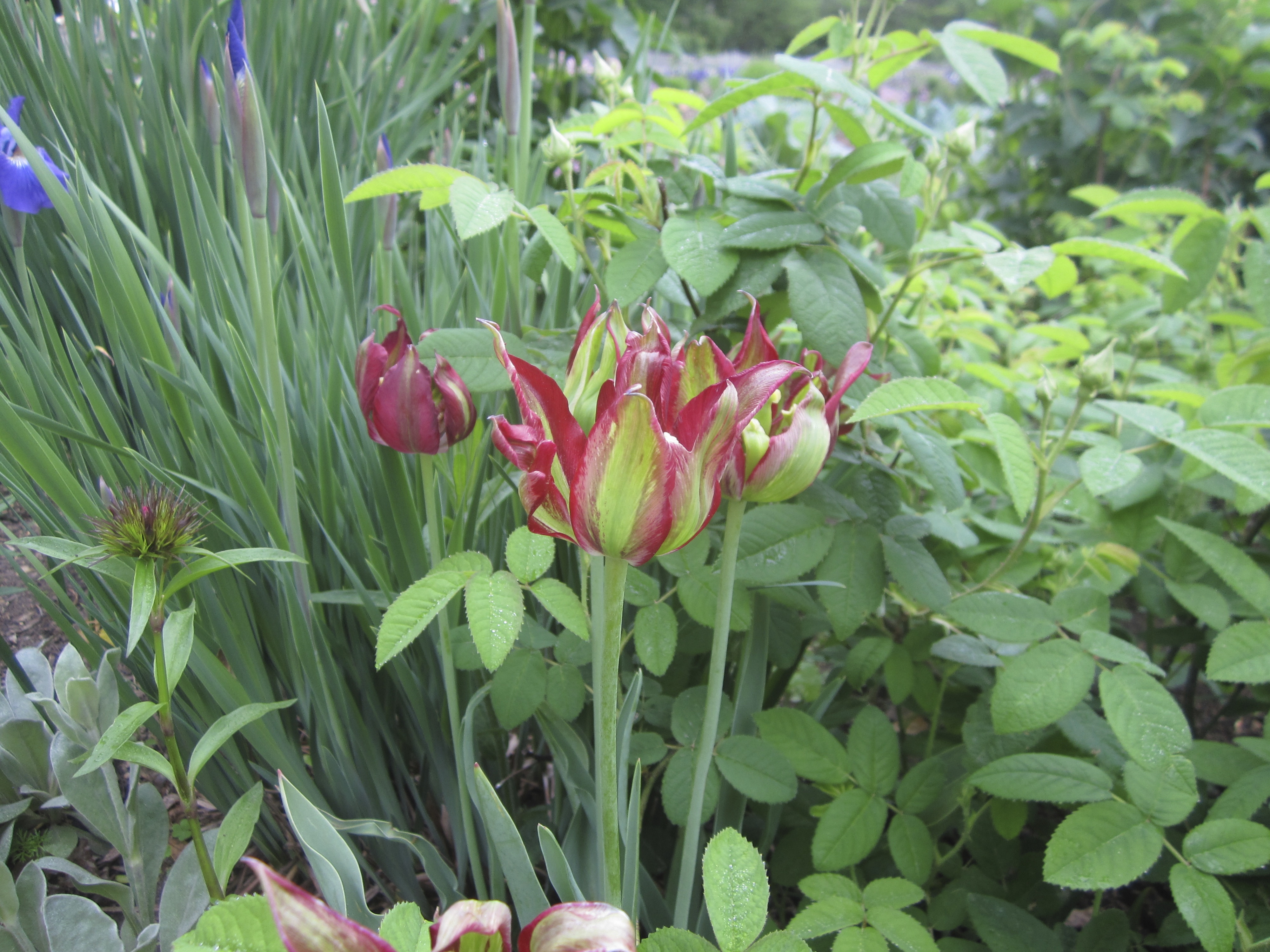 Red Hue is a unique tulip, featuring pointed red petals with green centers.