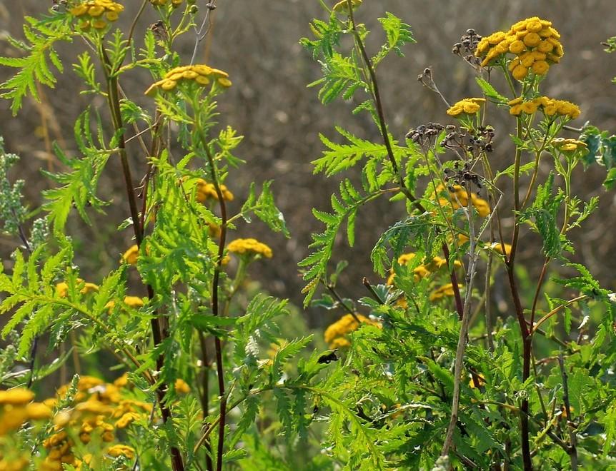 Tansy is a tough plant that can grow in almost any sunny spot. While its ferny foliage and clusters of cheerful yellow button flowers are attractive, it can be invasive due to its underground runners and propensity to re-seed.