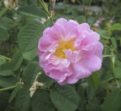The highly fragrant damask rose offers a profusion of pink flowers in the spring.