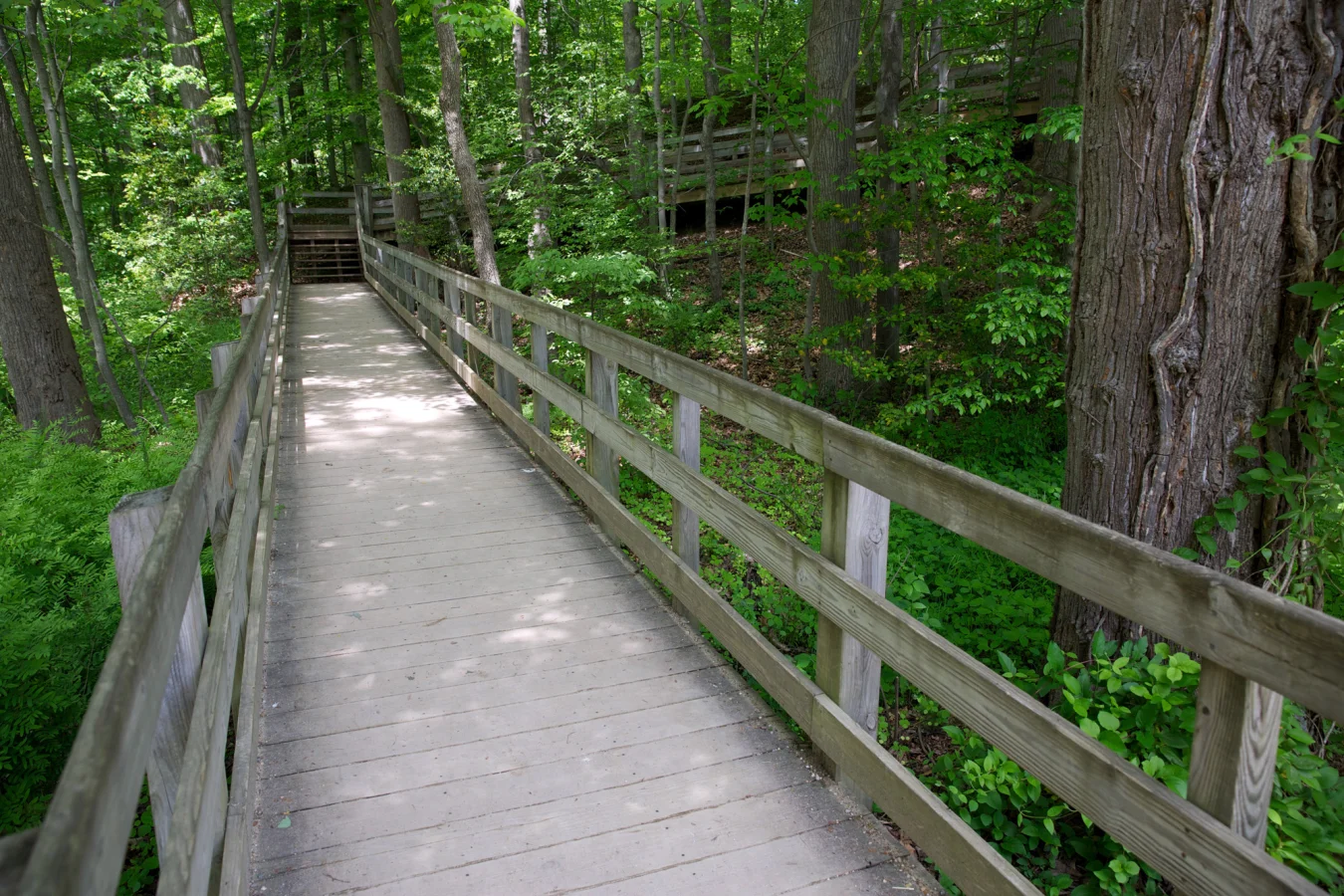 The forest trail includes several steep inclines and is not recommended for all visitors, though it can provide a cool respite on a hot day. It takes about 15 minutes to walk the trail.