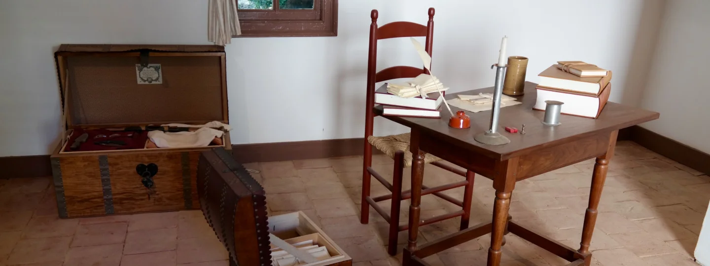 This building first served briefly as a hospital for enslaved workers, then as a space for wool-spinning, and finally as a dwelling. William Spence, a young Scotsman who was head gardener at the Mansion House Farm in 1799, probably lived here. Washington hired European-trained gardeners who could cultivate the varieties of plants and seeds he received from around the world. With the aid of two or three enslaved workers, Spence oversaw the Upper and Lower Gardens, orchards, and Greenhouse.