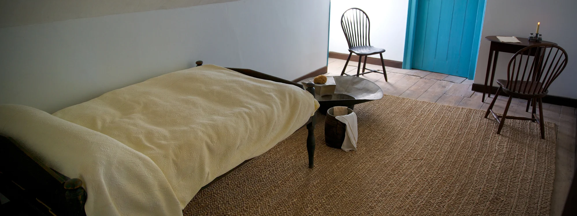 These two storerooms are located in the north and south additions made to the Mansion in the mid-1770s. Tradition held that Martha Washington occupied the south Lumber Room after George's death. However, the 1799 inventory indicates that Mrs. Washington's room was heated by a stove and architectural investigations clearly show that this room never had a stove. The only of these two Lumber Rooms to have had one is the room now identified as her bedchamber.