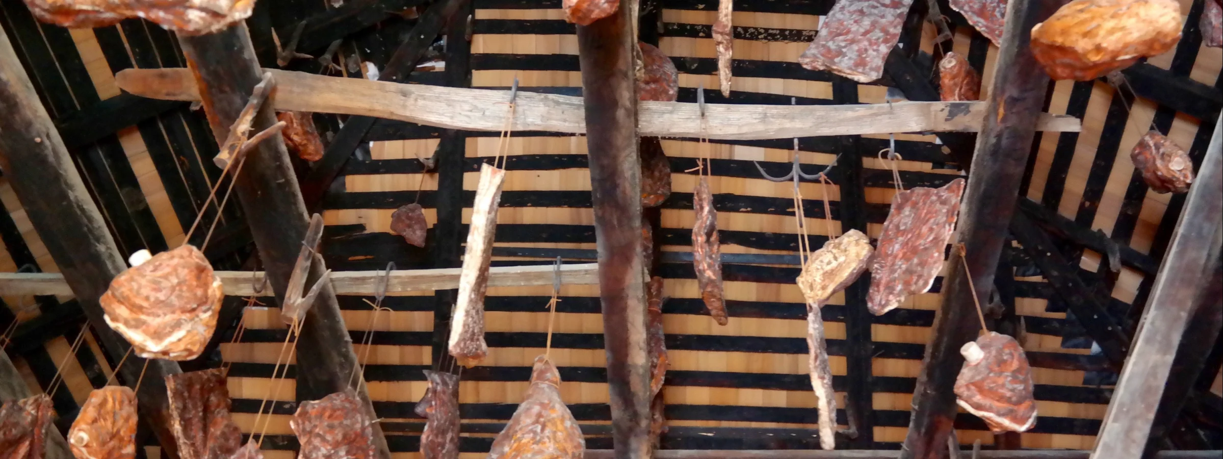 After enslaved workers salted or pickled the meat, they hung it on the rails inside the smokehouse above a smoldering fire that burned in the pit at the center of the building. For long-term storage after smoking, the meats remained hanging or were packed in barrels filled with ashes. During the curing process, meat was locked in the smokehouse to prevent theft. This precaution was not always successful, however. In May 1795, while George Washington was living in Philadelphia, his farm manager William Pearce wrote to inform him that “some person ripped a plank off the Back part of the smoke House and Took out several pieces of Bacon. . . . I have not been able to find out yet who It is.”