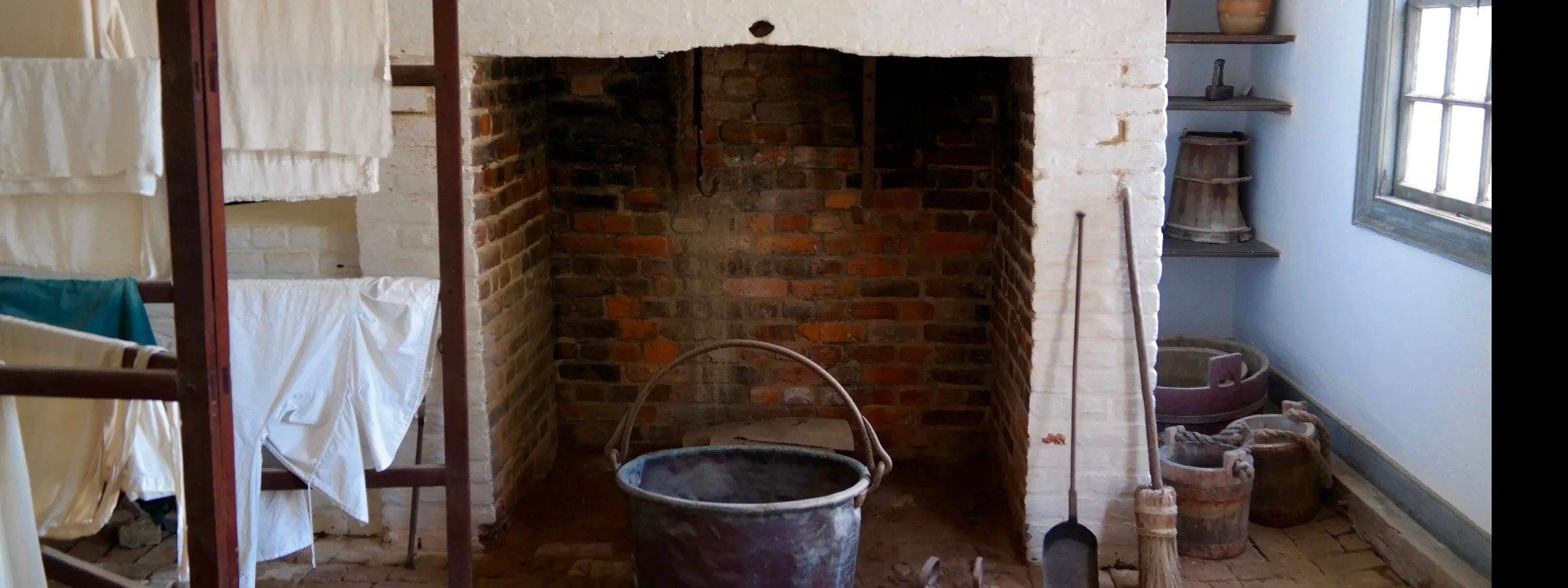 In the Wash House, enslaved laundresses performed weekly washings for the Washington family, long-term guests, hired white servants, and overseers.